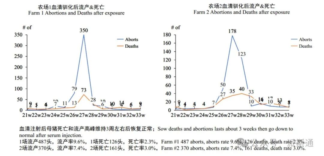 血清注射后母猪流产和死亡情况: